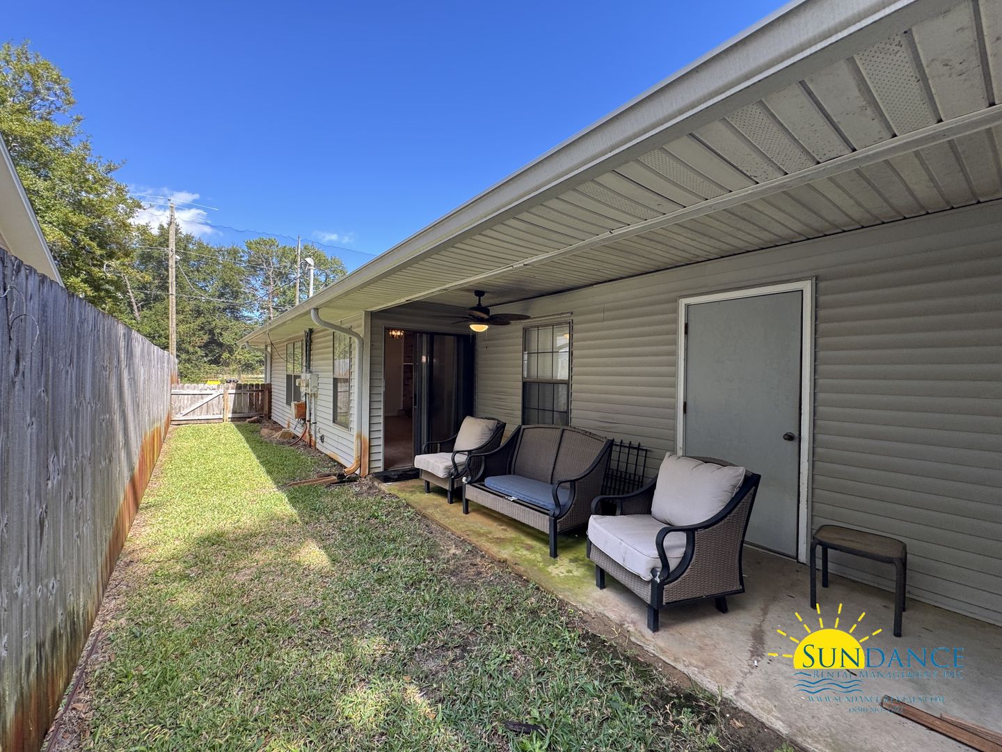 This beautiful, natural light filled 2-bedroom, 2-bath duplex is ideally located in Fort Walton Beach, just minutes from Eglin and Hurlburt Field, as well as top-rated shopping, dining, and entertainment options. Step inside to an inviting open-concept living and dining area featuring stylish tile and LVP flooring throughout. The kitchen is equipped with a breakfast bar, pantry, and essential appliances including a stove/oven, refrigerator, dishwasher, and garbage disposal offering both comfort and convenience. Both spacious bedrooms feature en-suite bathrooms and walk-in closets, providing plenty of privacy and storage. Additional features include washer and dryer hookups, ceiling fans, and driveway parking. Enjoy outdoor living on the covered side patio overlooking the fenced yard perfect for relaxing or entertaining. Landscaping services are included, allowing you to enjoy a low-maintenance lifestyle. Don’t miss the opportunity to make this well-maintained home yours! (fireplace is non-functional)