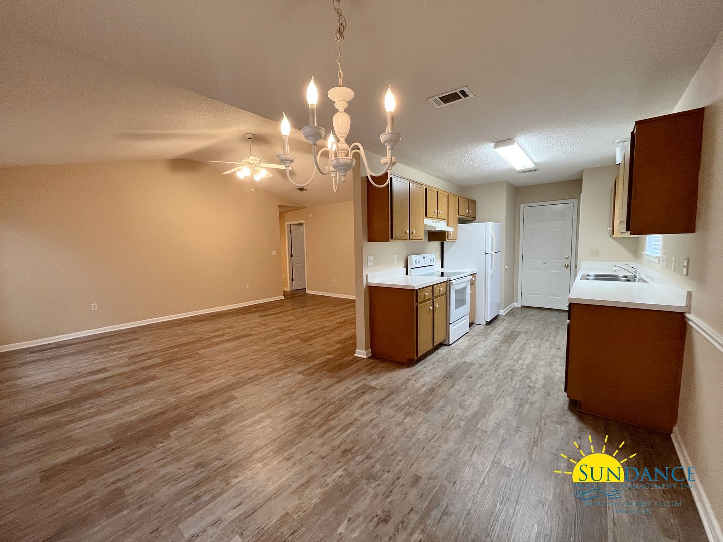 Welcome to this charming home in Niceville. This cozy home features 3 bedrooms and 2 bathrooms, perfect for those looking for a comfortable living space. The property includes a 1 car garage and driveway parking for convenience. As you enter the home you are greeted by a good-sized living area that provides ample privacy to bedrooms, impressive luxury vinyl plank flooring, and a dining area perfect for sharing meals. The kitchen offers ample cabinets and a breakfast bar. The primary suite boasts a walk-in closet for ample storage. Two additional good sized bedrooms and another full bathroom complete the interior. Enjoy the privacy of the fenced backyard with an open patio and a garage workbench as-is. Don't miss out on the opportunity to make this your new home!