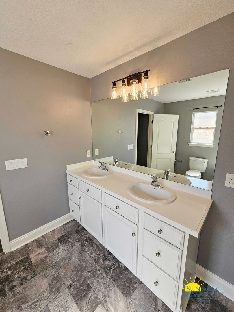 Upstairs, a versatile bonus room offers endless possibilities whether you need a home office, media space, or playroom. The primary suite is a true retreat, highlighted by an elegant tray ceiling, a large walk-in closet, dual vanities, a relaxing garden tub, and a separate shower. Two additional great-sized bedrooms, a full bathroom, and a dedicated laundry area with washer and dryer hookups complete the thoughtfully designed second story.